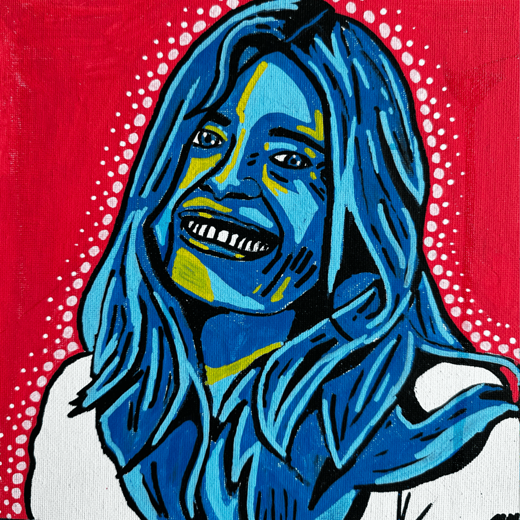 dit werk is een portret van mijn oud kunstdocent gemaakt als afscheidscadeau toen ik van de middelbare school afging. voor dit portret heb ik primaire kleuren gebruikt om het een pop te geven. de stijl van dit werk is geïnspireerd op pop art een stijl uit de 50’s tot 70’s